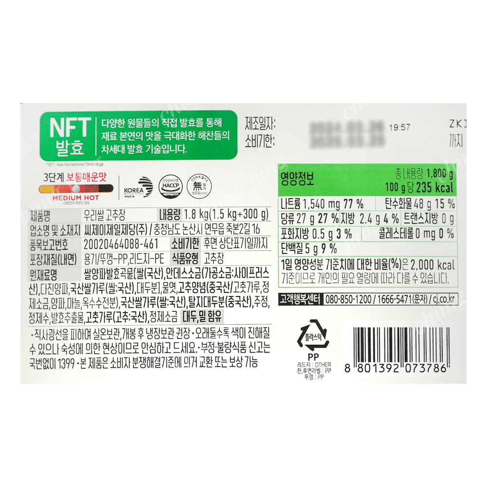 | 상품명 | 고추장(나트륨↓우리쌀,해찬들,1.5kg+300g) | 식품유형 | 상세설명참조 |