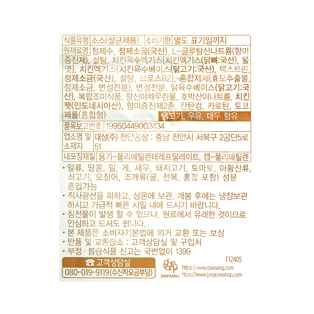 | 상품명 | 치킨스톡(쉐프의,쉐프원,2kg) | 식품유형 | 상세설명참조 |