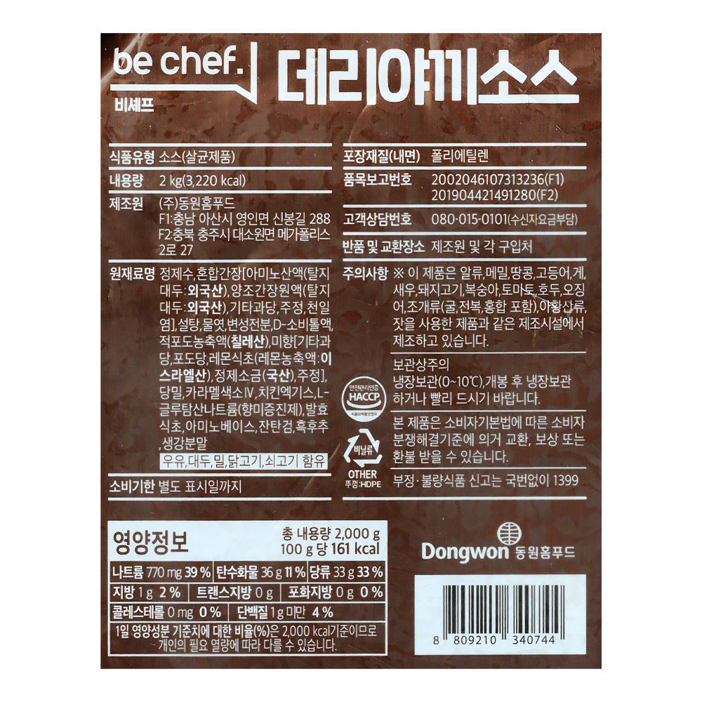 | 상품명 | 소스(데리야끼,동원홈,2kg) | 식품유형 | 상세설명참조 |