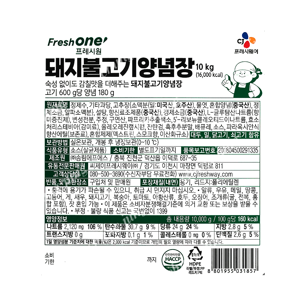 | 상품명 | 소스(돼지불고기양념장,프레시원,10kg) | 식품유형 | 상세설명참조 |