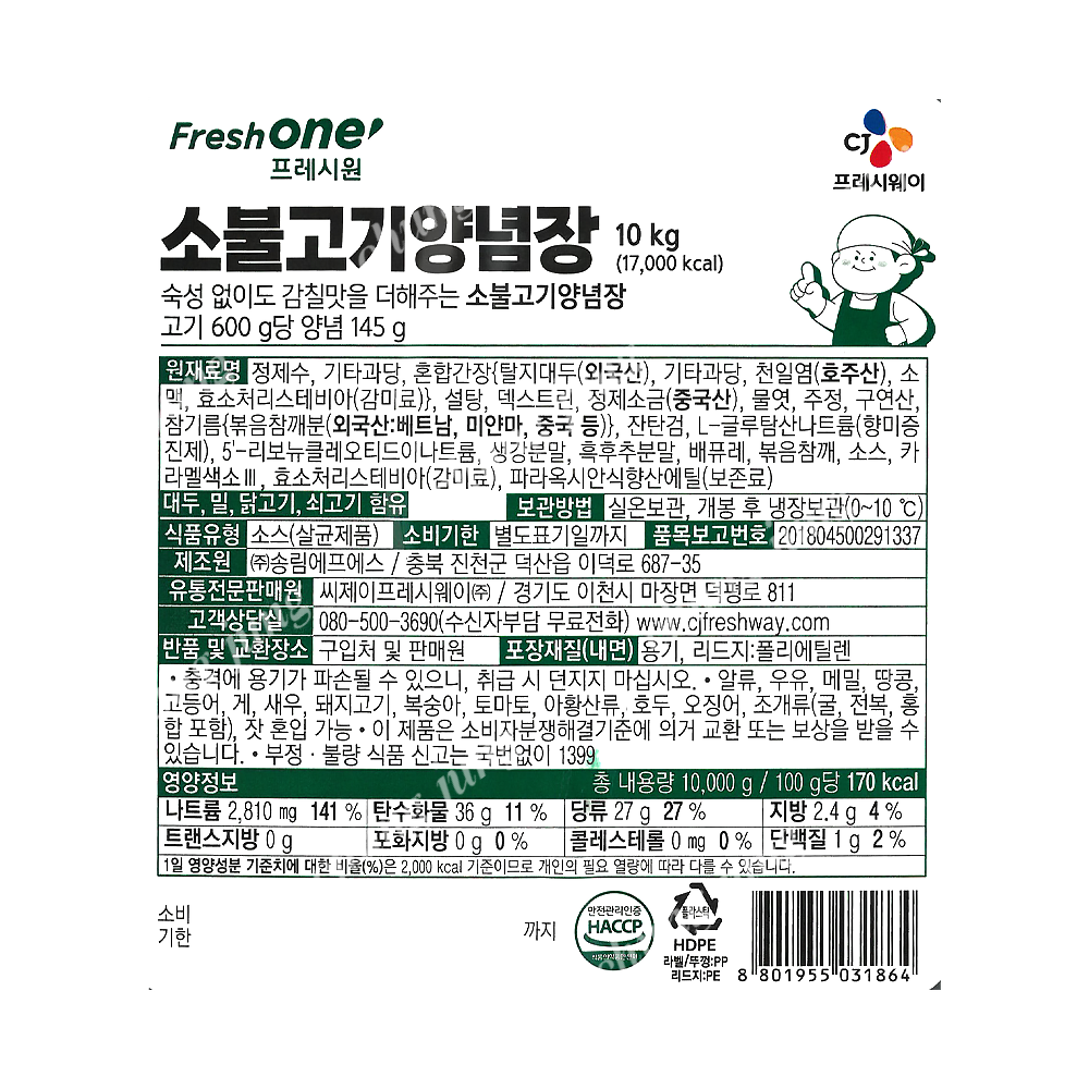 | 상품명 | 소스(소불고기양념장,프레시원,10kg) | 식품유형 | 상세설명참조 |