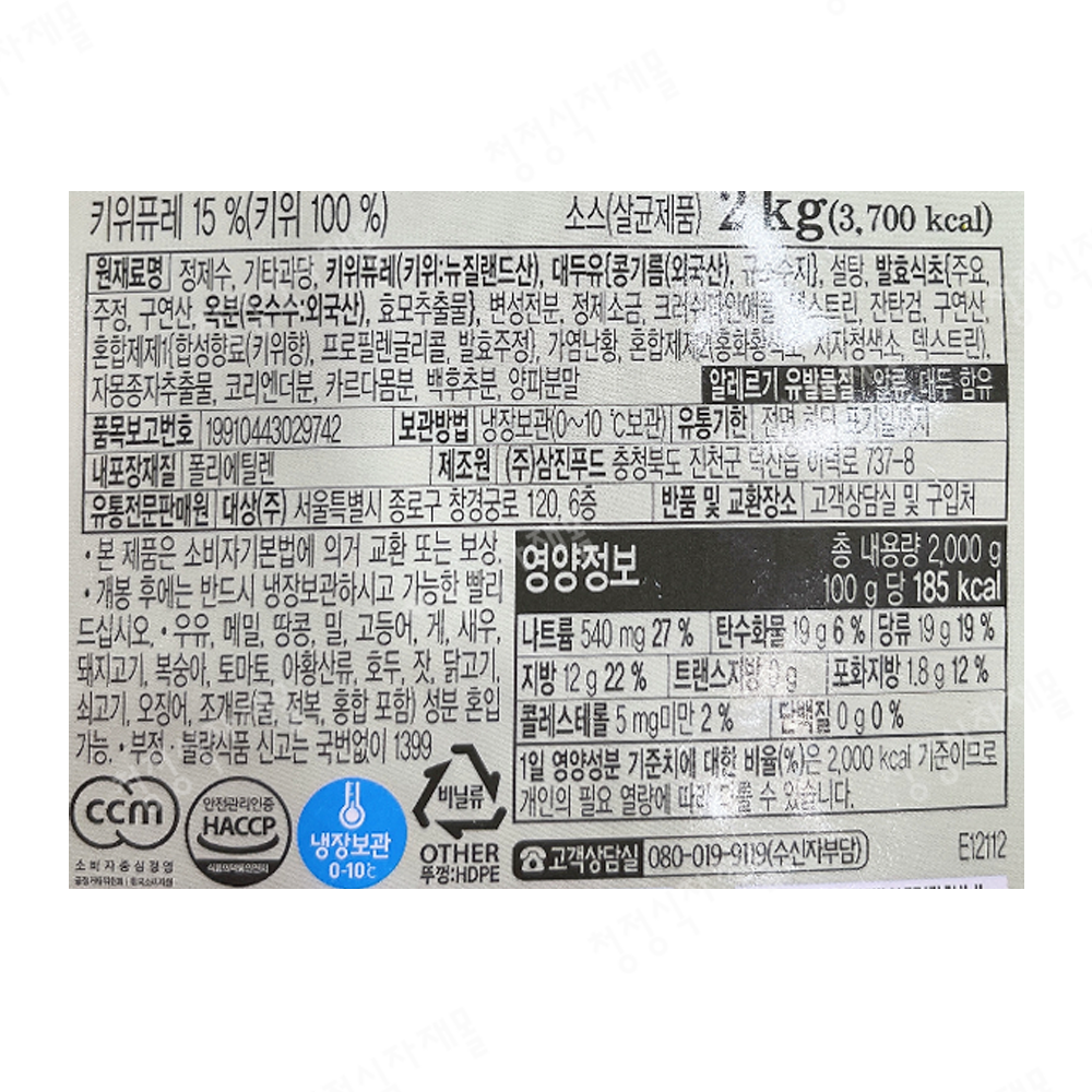 | 상품명 | 쉐프원키위드레싱2kg | 식품유형 | 상세설명참조 |