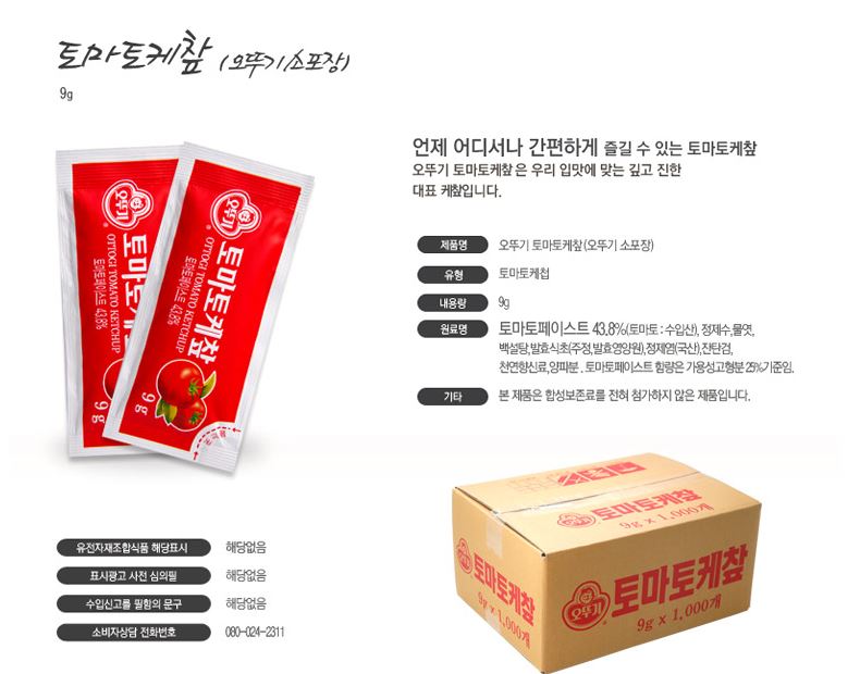 케찹(일회용,오뚜기,9g*1000입)