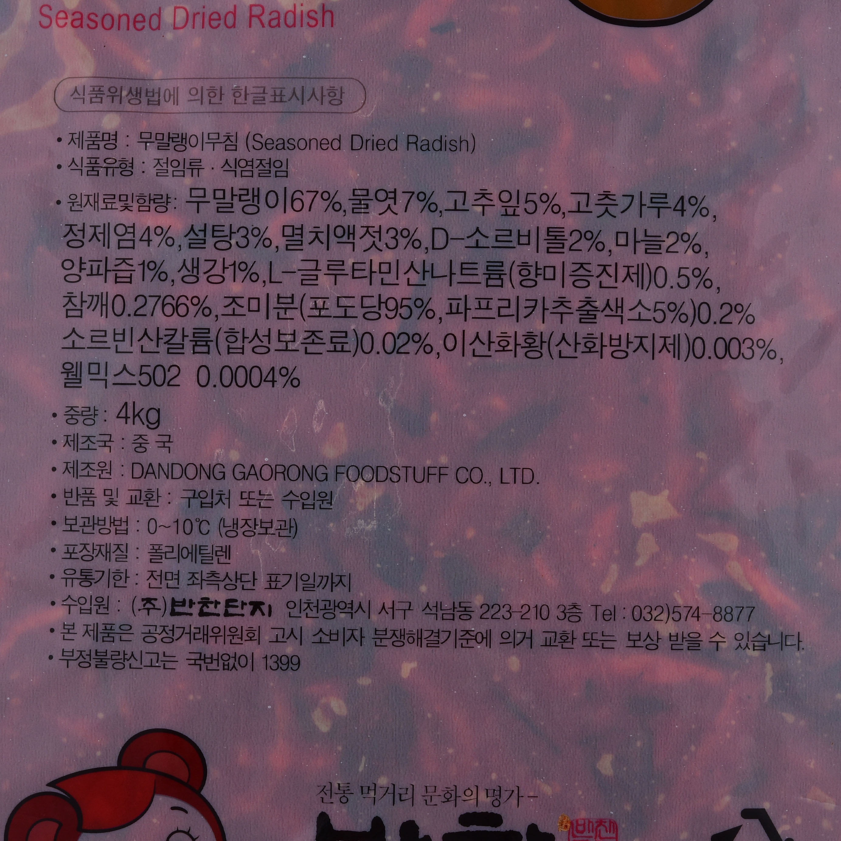 | 상품명 | 무말랭이무침 | 식품유형 | 상세설명참조 |