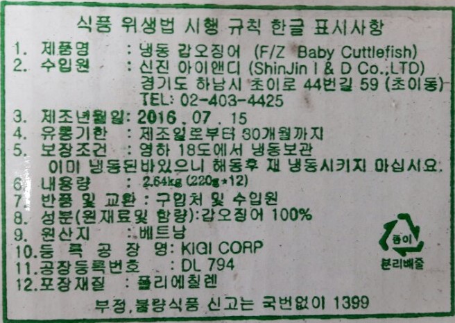 | 수입식품에 해당하는 겨우 "식품위생법에 따른 수입신고를 필함"의 문구 |