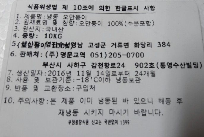 | 수입식품에 해당하는 겨우 "식품위생법에 따른 수입신고를 필함"의 문구 |