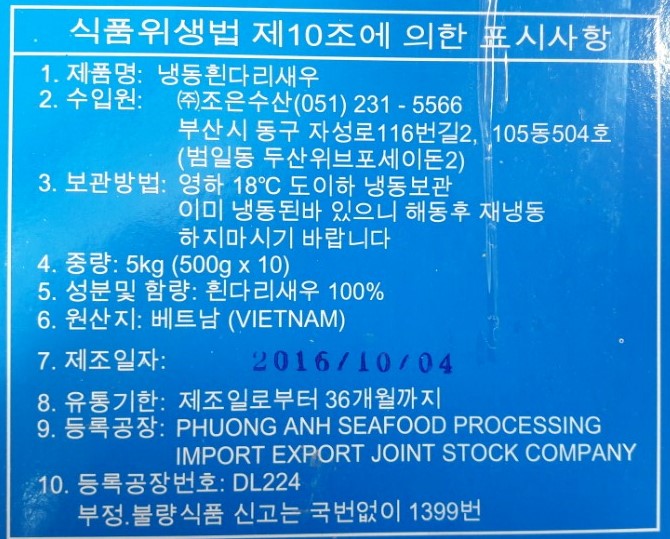 | 수입식품에 해당하는 겨우 "식품위생법에 따른 수입신고를 필함"의 문구 |