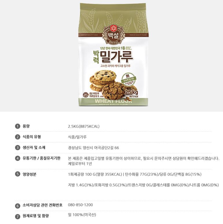 밀가루(박력,백설,2.5kg)