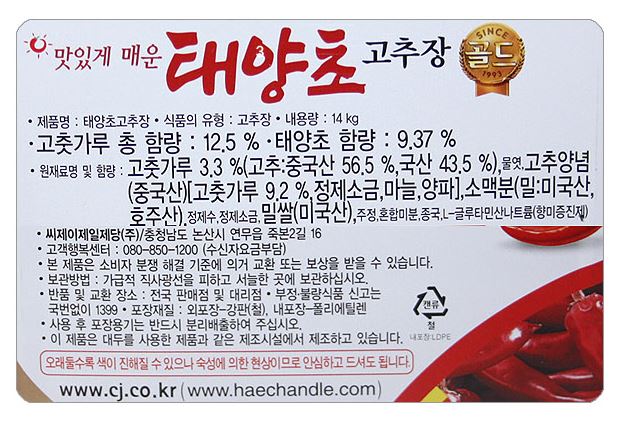 고추장(태양초(골드),해찬들,14kg)