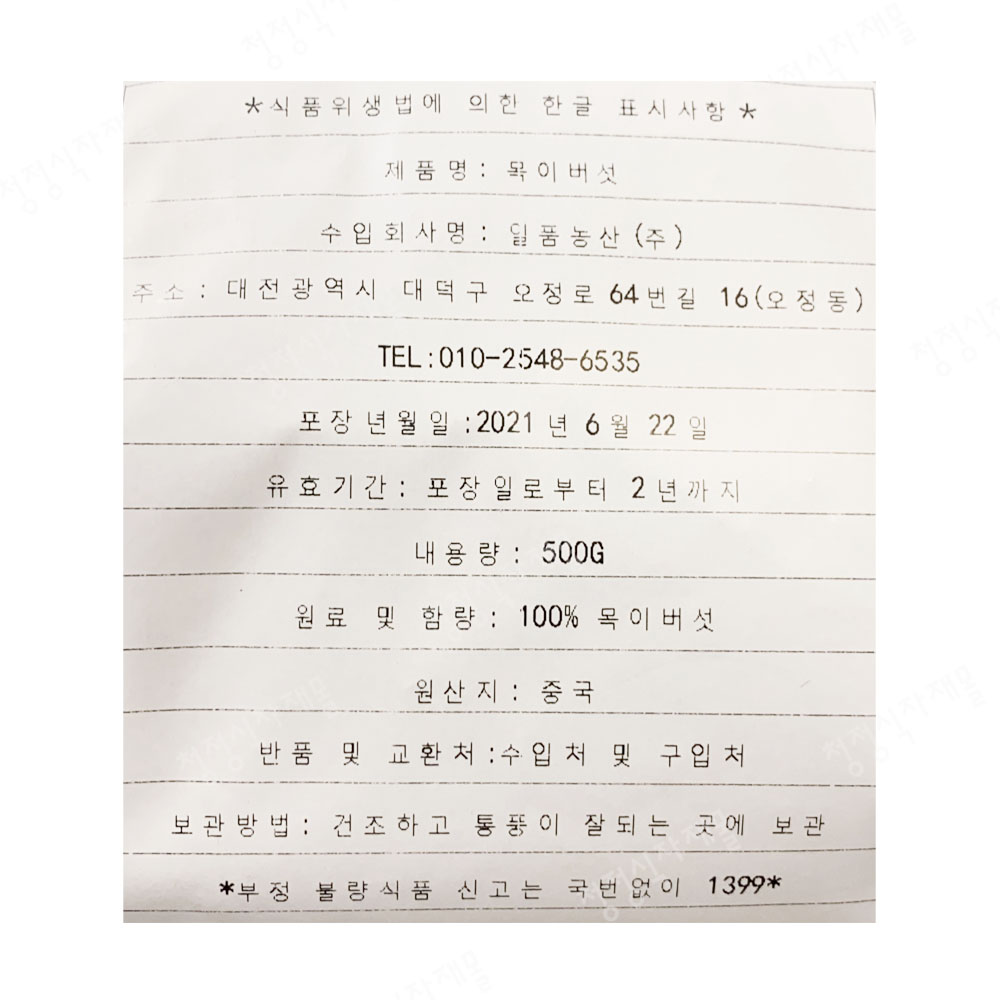 | 상품명 | 건목이버섯(채,500g,중국산) | 식품유형 | 상세설명참조 |