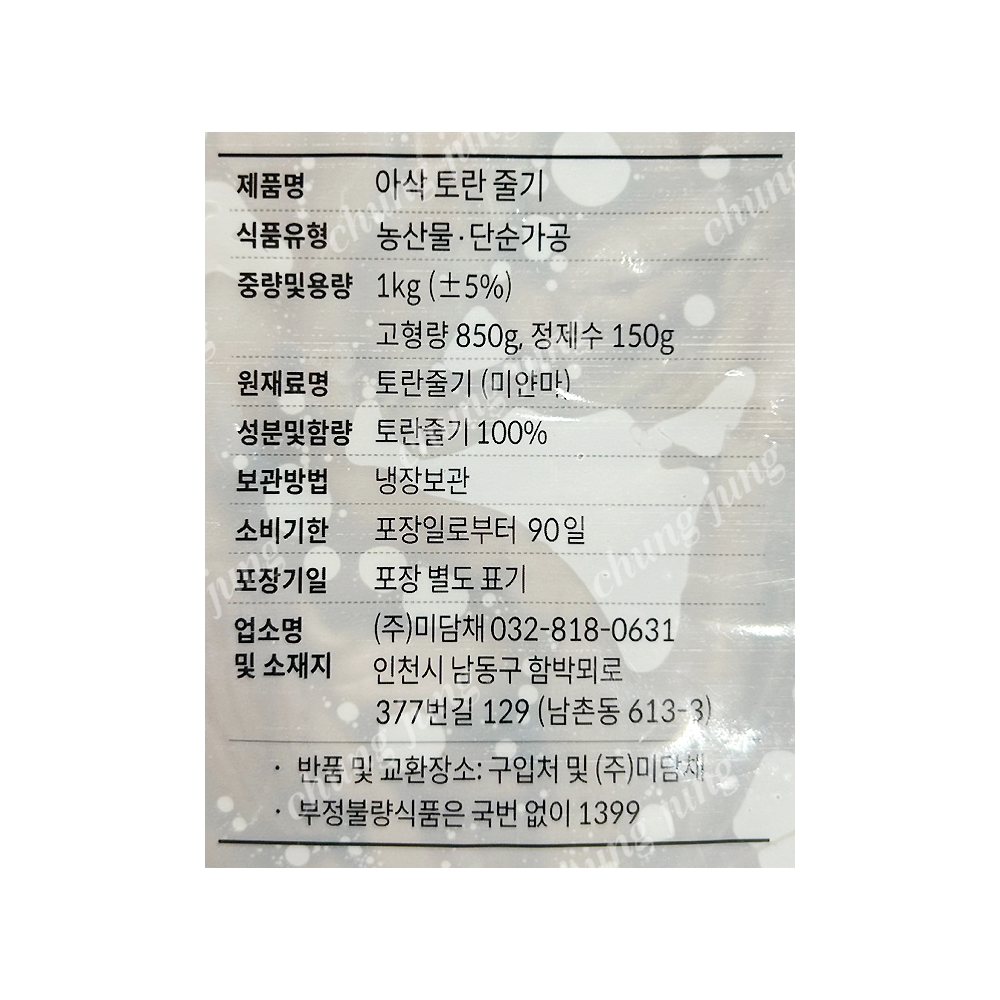 | 상품명 | 야/토란대(줄기)(미담채,1kg,미얀마산) | 식품유형 | 상세설명참조 |