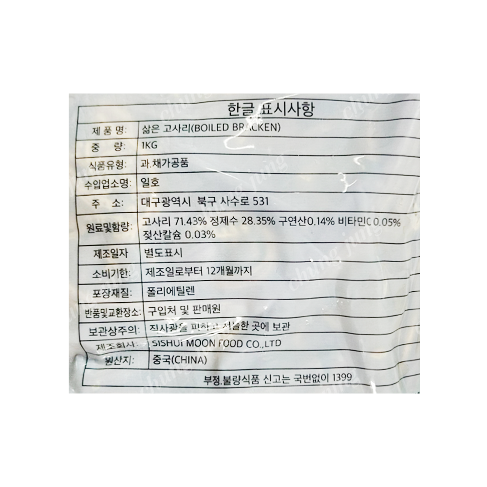 | 상품명 | 삶은고사리(1kg,초록,중국산) | 식품유형 | 상세설명참조 |