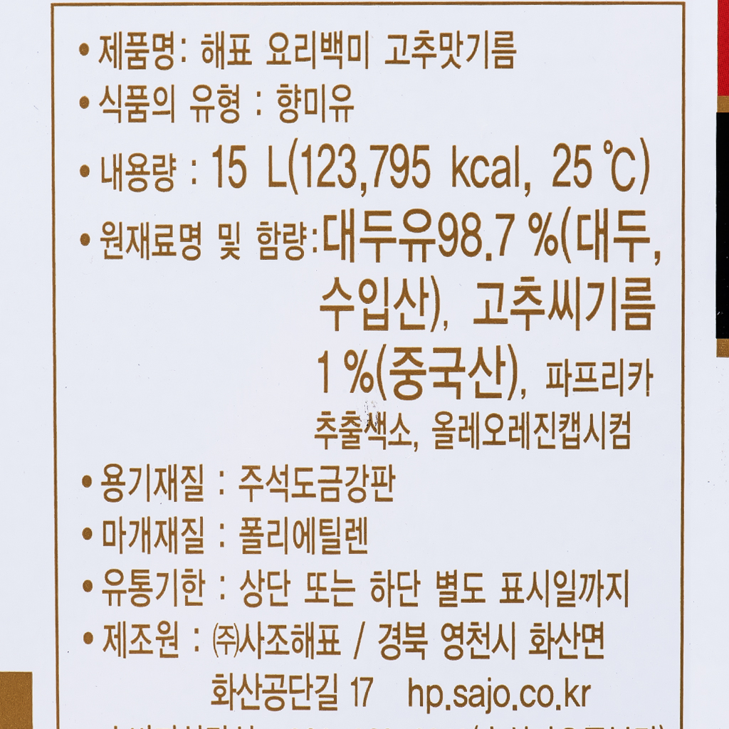 영양성분(식품위생법에 따른 영양성분 표시대상 식품에 한함) 상세설명참조 유전자재조합식품에 해당하는 경우의 표시 해당없음