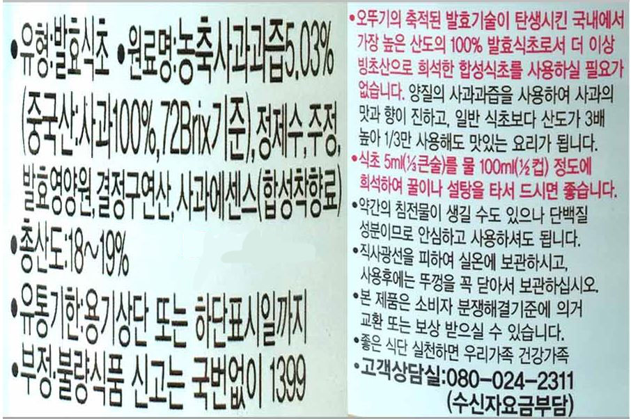 식초(3배사과,오뚜기,1.8L)