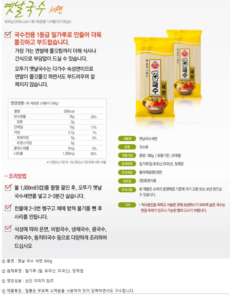 국수(옛날,세면,오뚜기,900g)