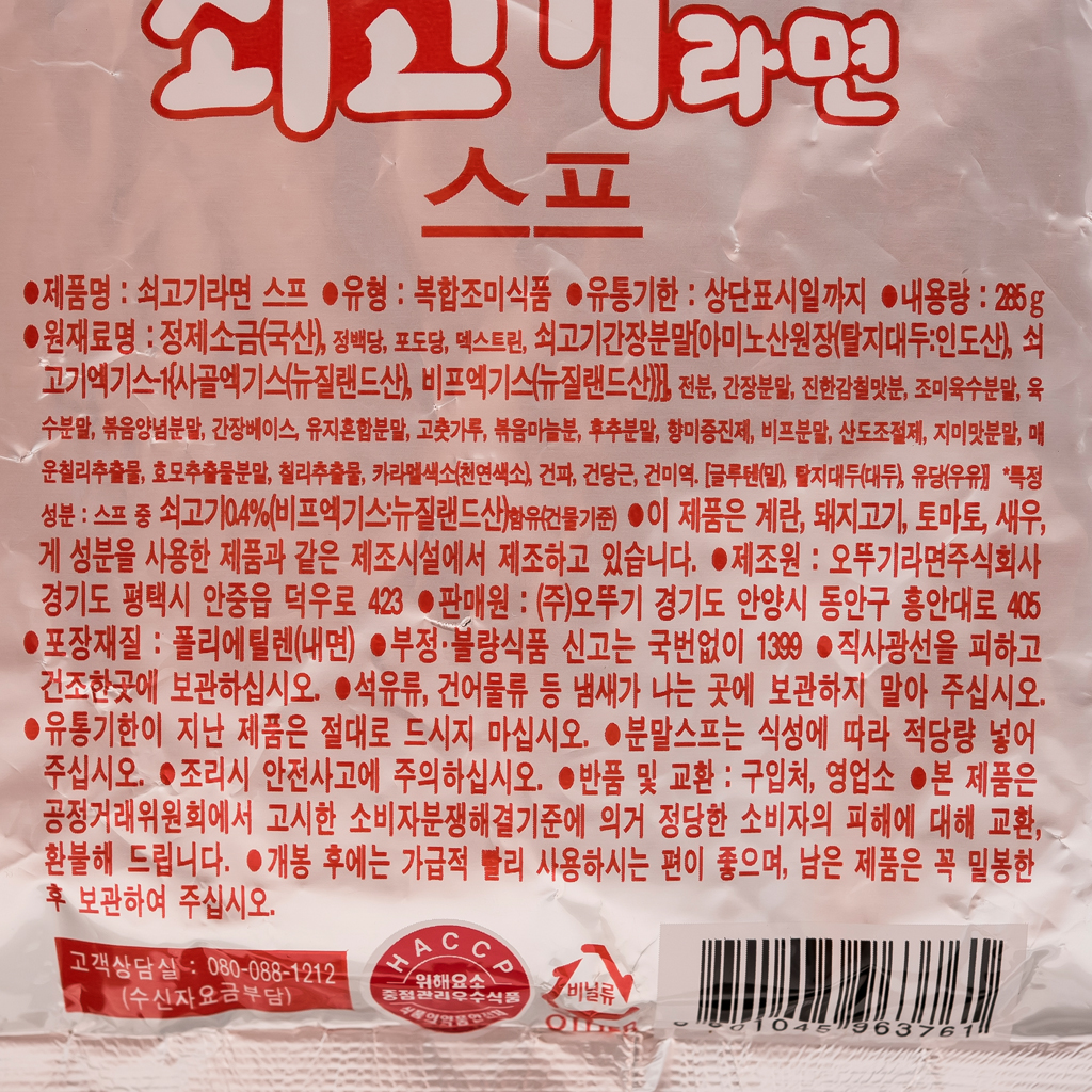 라면스프(쇠고기,오뚜기,285g)