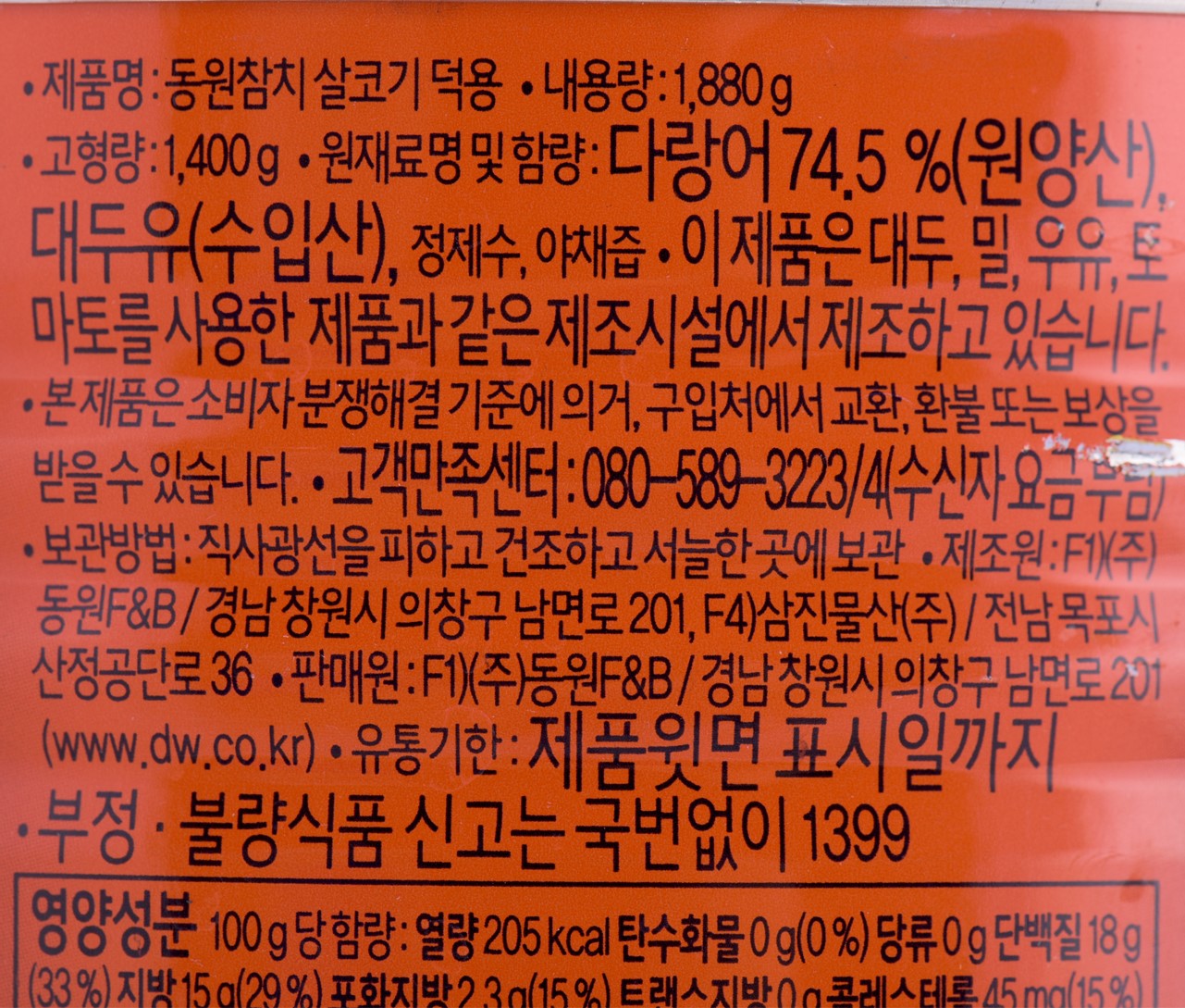 영양성분(식품위생법에 따른 영양성분 표시대상 식품에 한함) 상세설명참조 유전자재조합식품에 해당하는 경우의 표시 해당없음