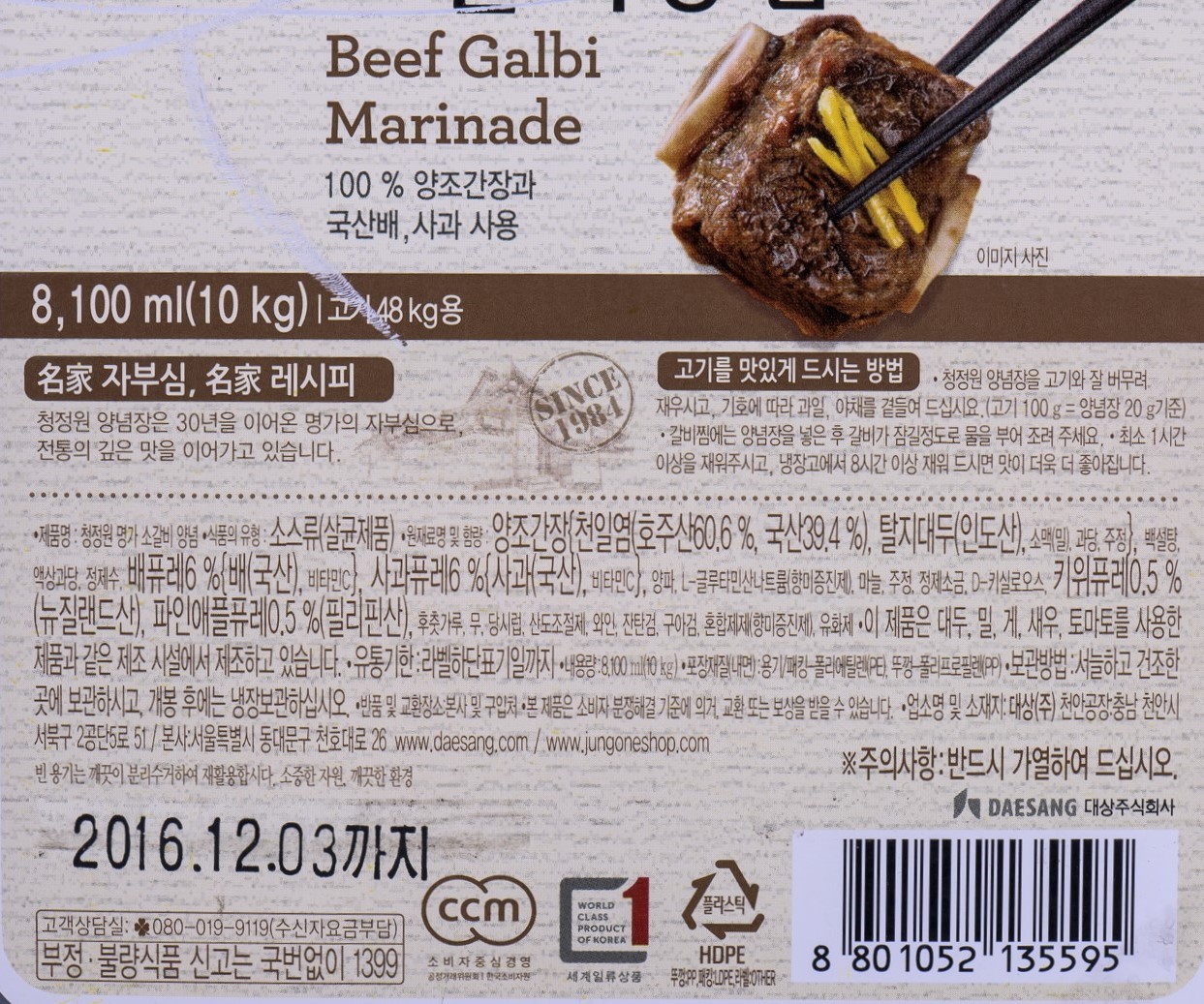 소스(소갈비양념,청정원,10kg)