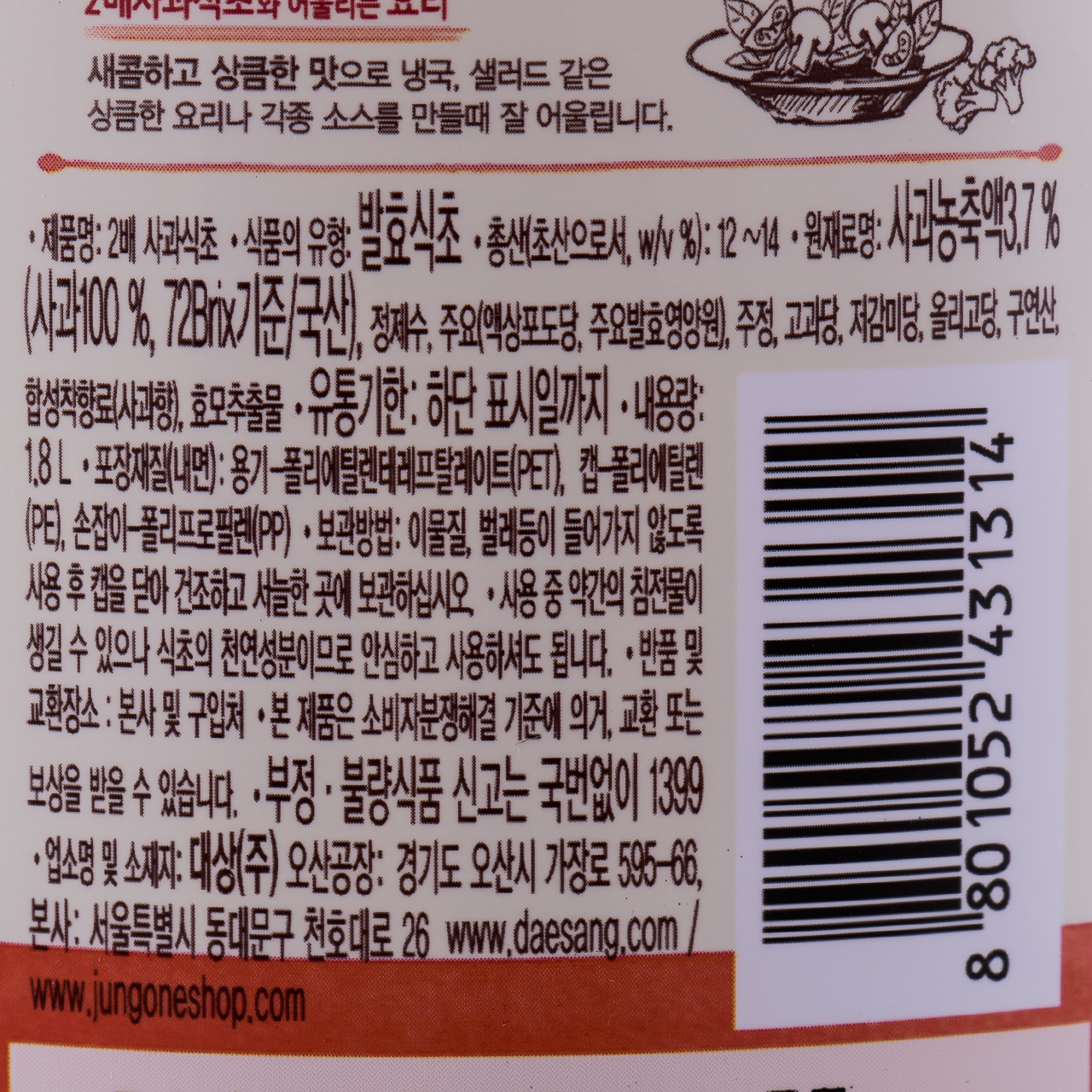 식초(2배사과,청정원,1.8L)