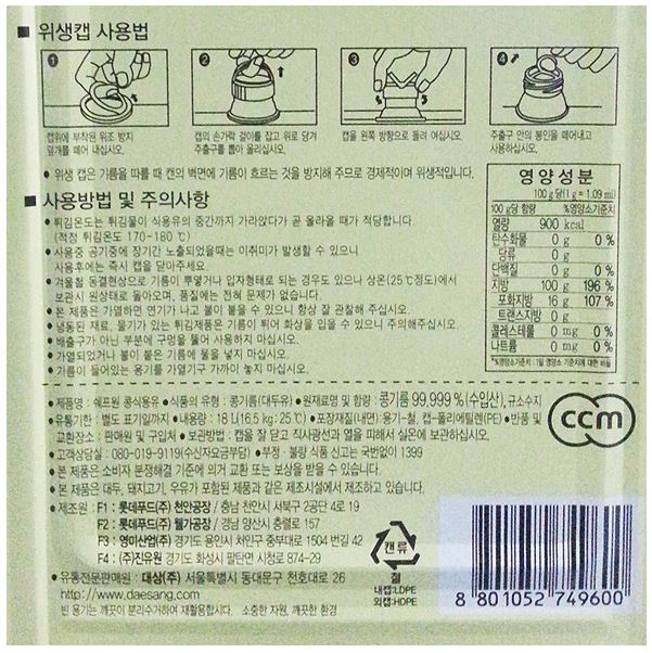 | 생산자및소재지(수입품의경우 생산자,수입자 및 제조국) | 상세설명참조 | 제조연월일,유통기한또는품질유지기한 | 상품입고시 마다 제조일이 상이하여 유통기한이 다릅니다.배송되는 상품은 선입선출에 의해 출고되오니 안심하고 구입하시기 바랍니다. 유통기한에 대한 궁금하신사항은 문의글이나 전화를 주시면 상세히 안내해 드리겠습니다. |