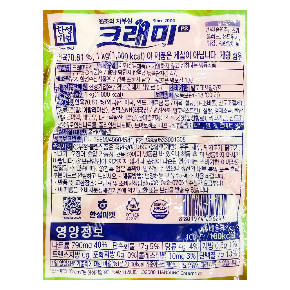 맛살(크래미F2,한성,1kg)