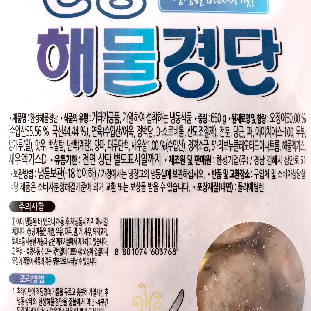 영양성분(식품위생법에 따른 영양성분 표시대상 식품에 한함) 상세설명참조 유전자재조합식품에 해당하는 경우의 표시 해당없음