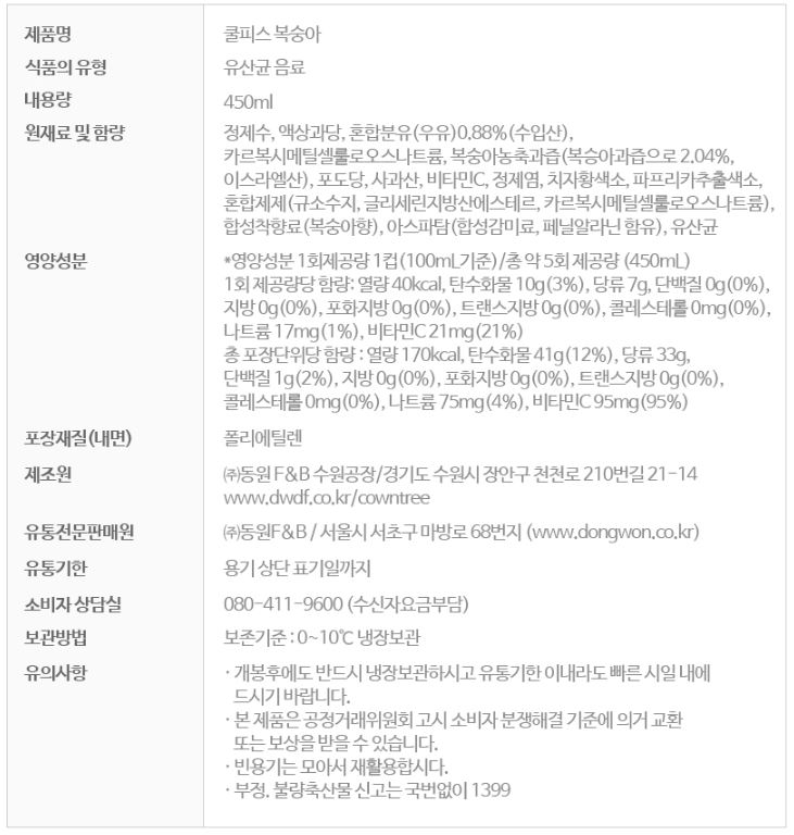 PYA/동원쿨피스복숭아450ml