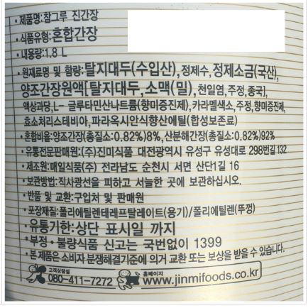 영양성분(식품위생법에 따른 영양성분 표시대상 식품에 한함) 상세설명참조 유전자재조합식품에 해당하는 경우의 표시 해당없음