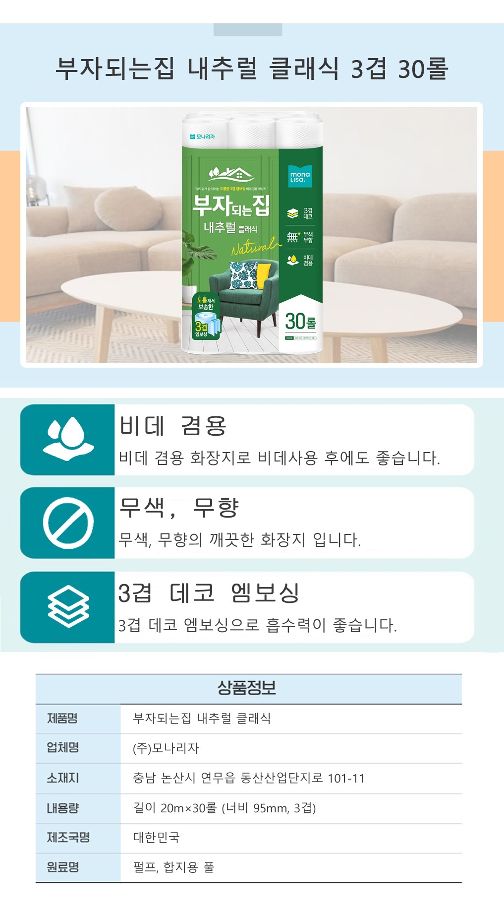 롤화장지내추럴클래식,부자되는집,30롤) |