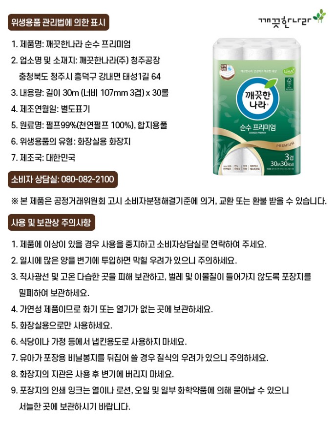롤화장지(순수(프리미엄),깨끗한나라,30롤,33M) |