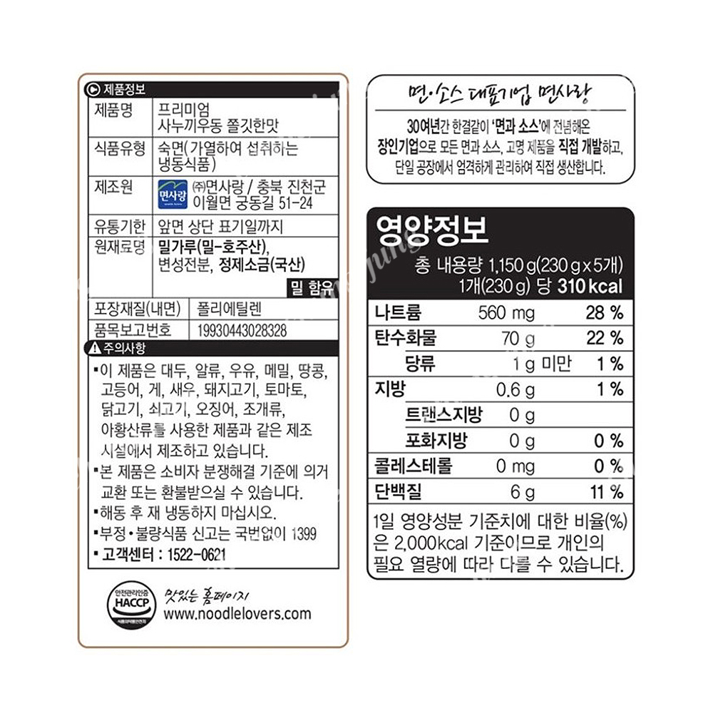 | 상품명 | 면사랑사누끼우동면 | 식품유형 | 상세설명참조 |