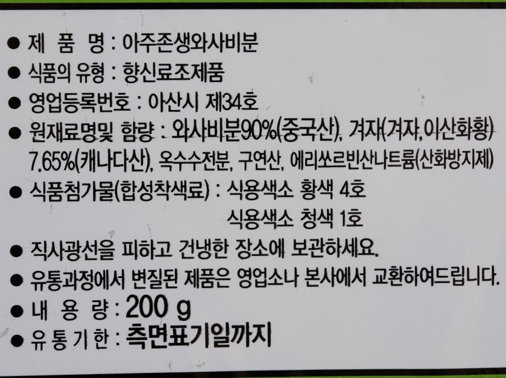 와사비(분,와사비(생),승진,200g)