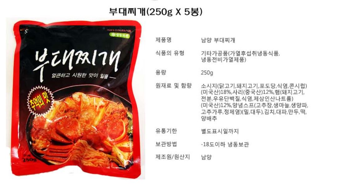 | 상품명 | 부대찌개 | 식품유형 | 상세설명참조 |