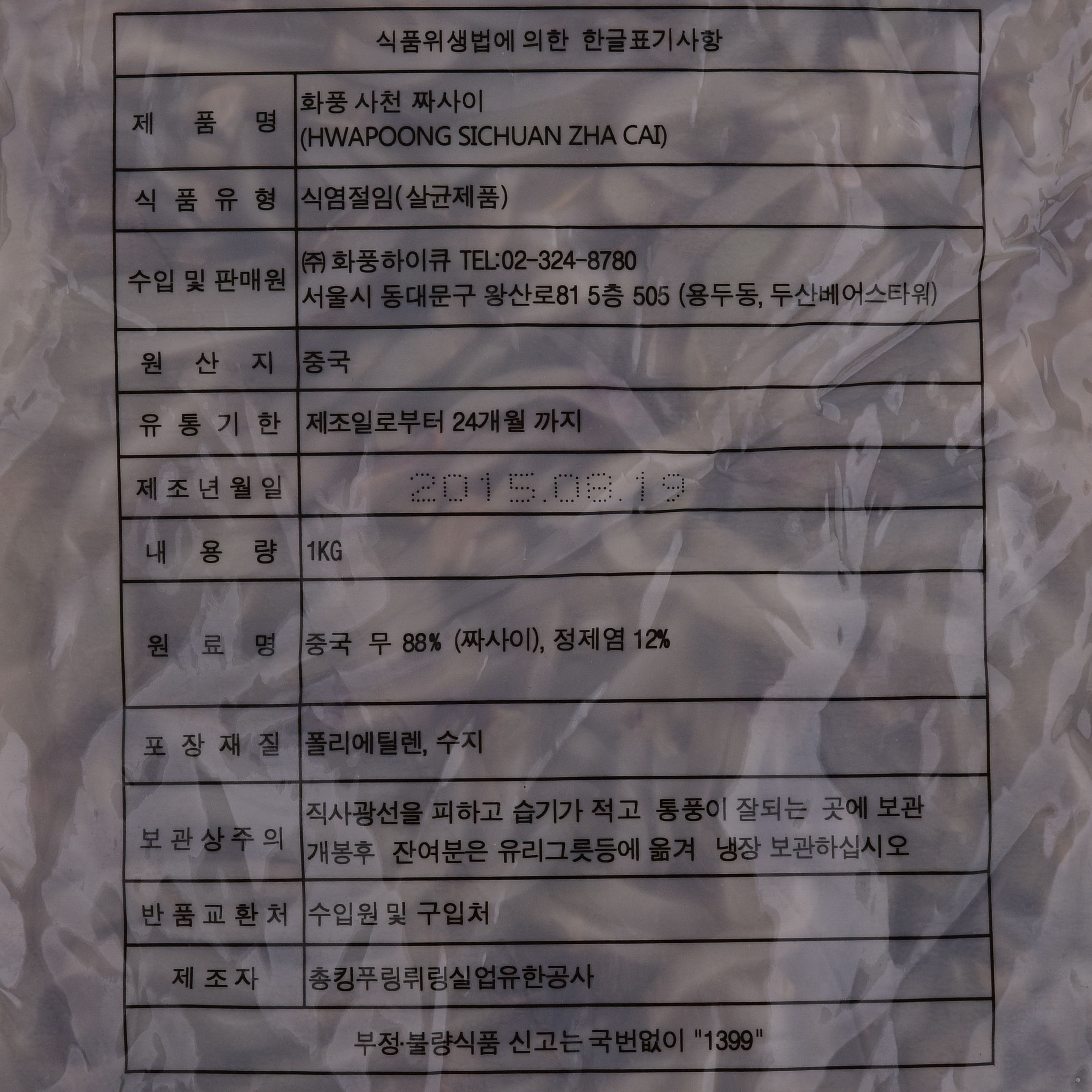 | 상품명 | 화풍 사천 짜사이 | 식품유형 | 상세설명참조 |