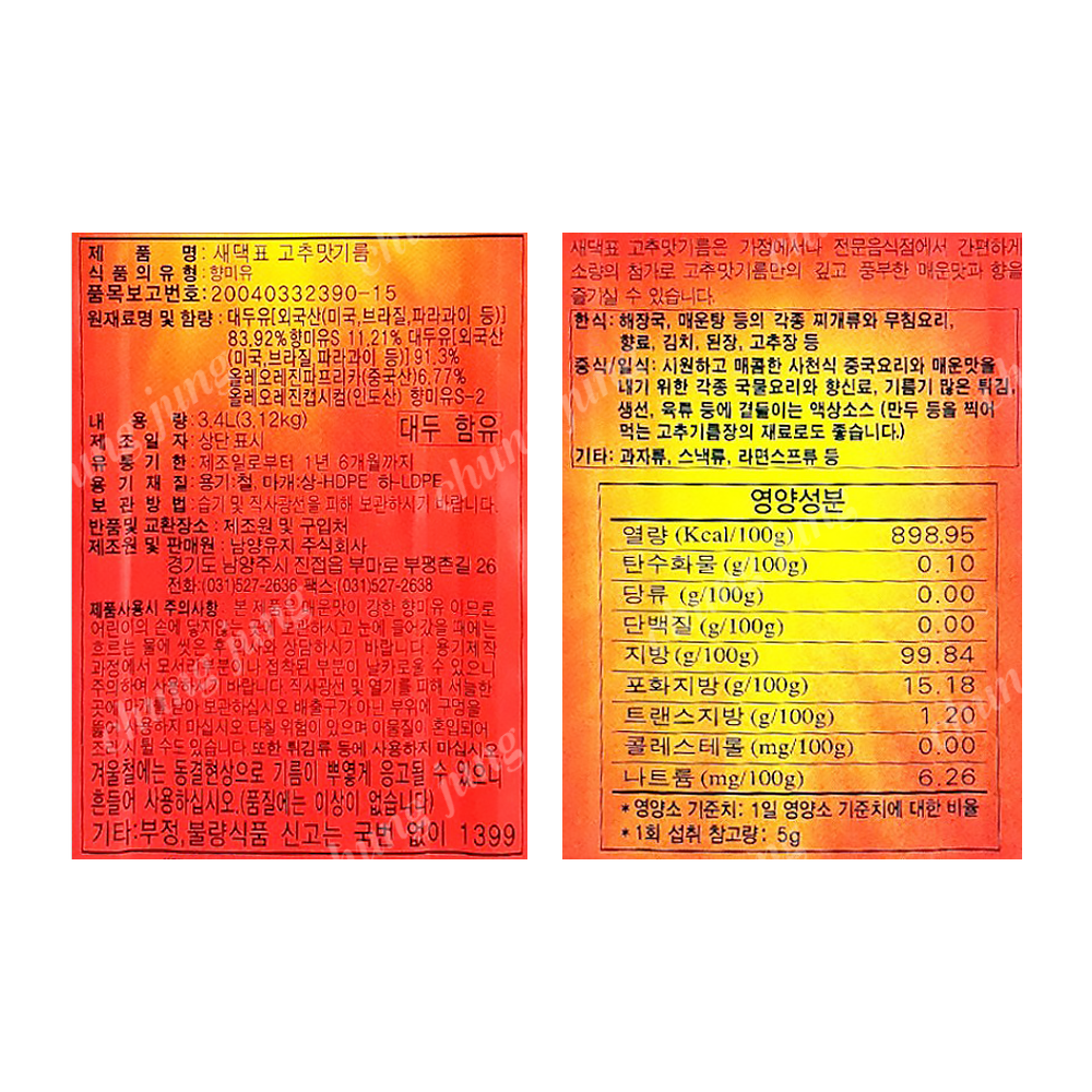 고추맛기름(새댁표,15L)