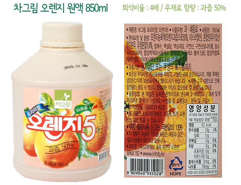 원액(오렌지,차그림,850ml)