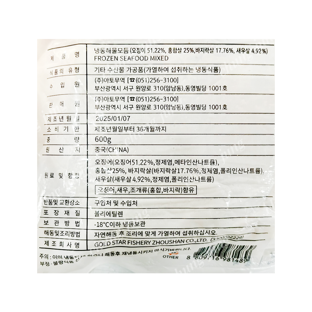 | 상품명 | 수/모듬해물(바다에서건너온,600g) | 식품유형 | 상세설명참조 |
