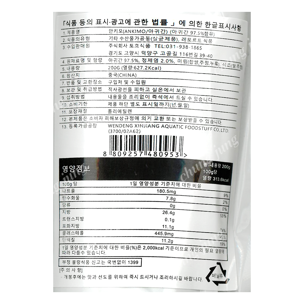 | 상품명 | 안키모(아귀간,파랑,토호,200g) | 식품유형 | 상세설명참조 |