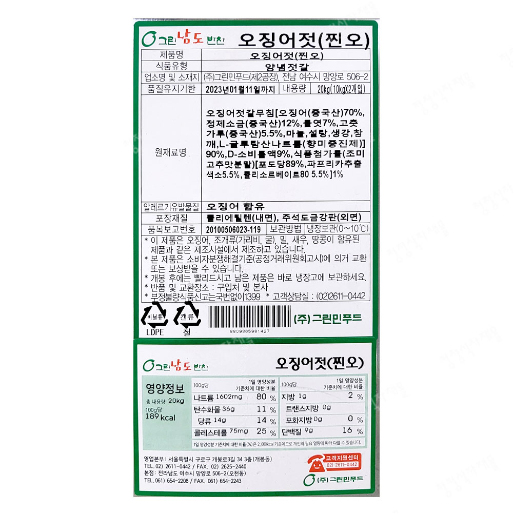 | 상품명 | SM/오징어젓(그린(찐오),20kg) | 식품유형 | 상세설명참조 |