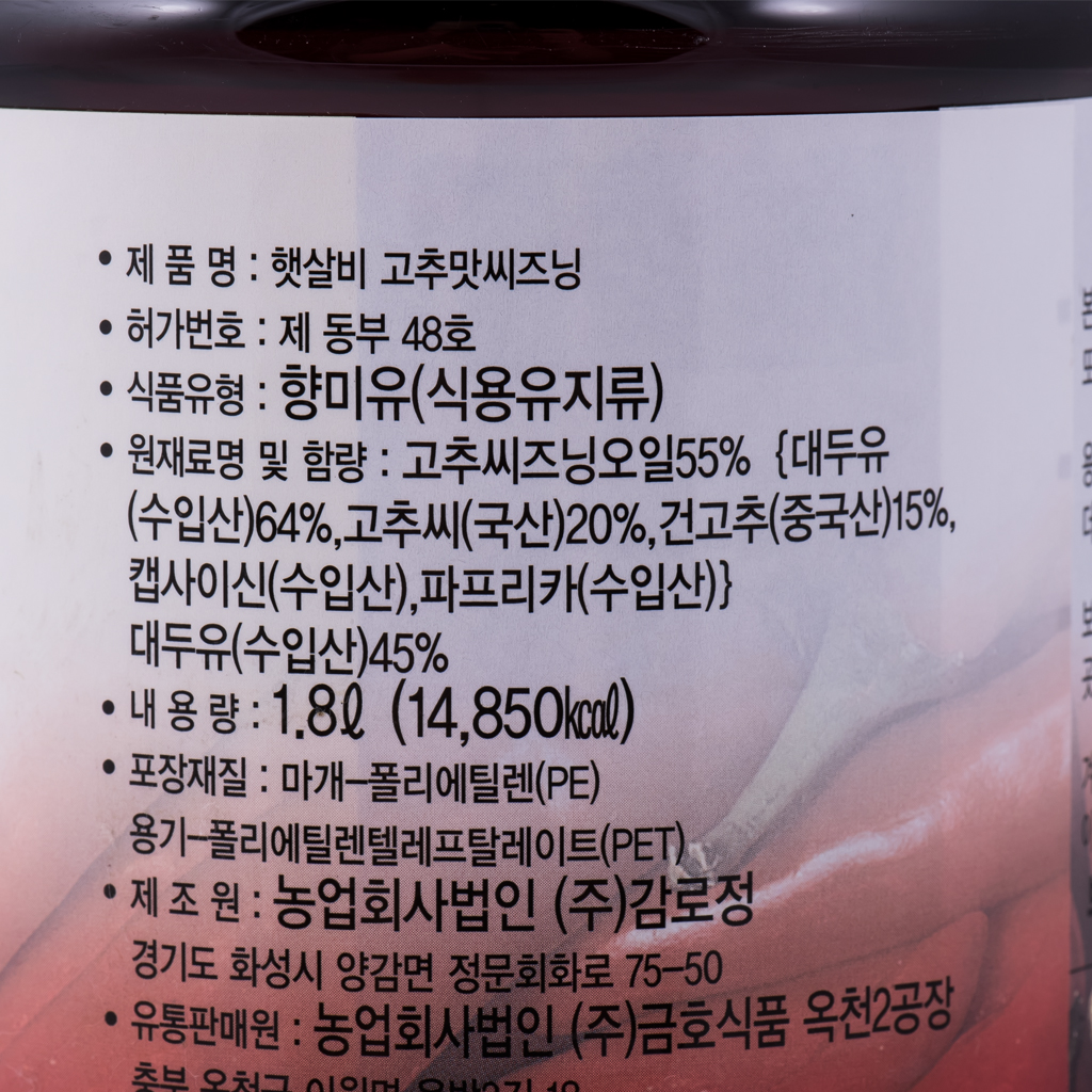 고추맛기름(햇살비(금호),1.8L)