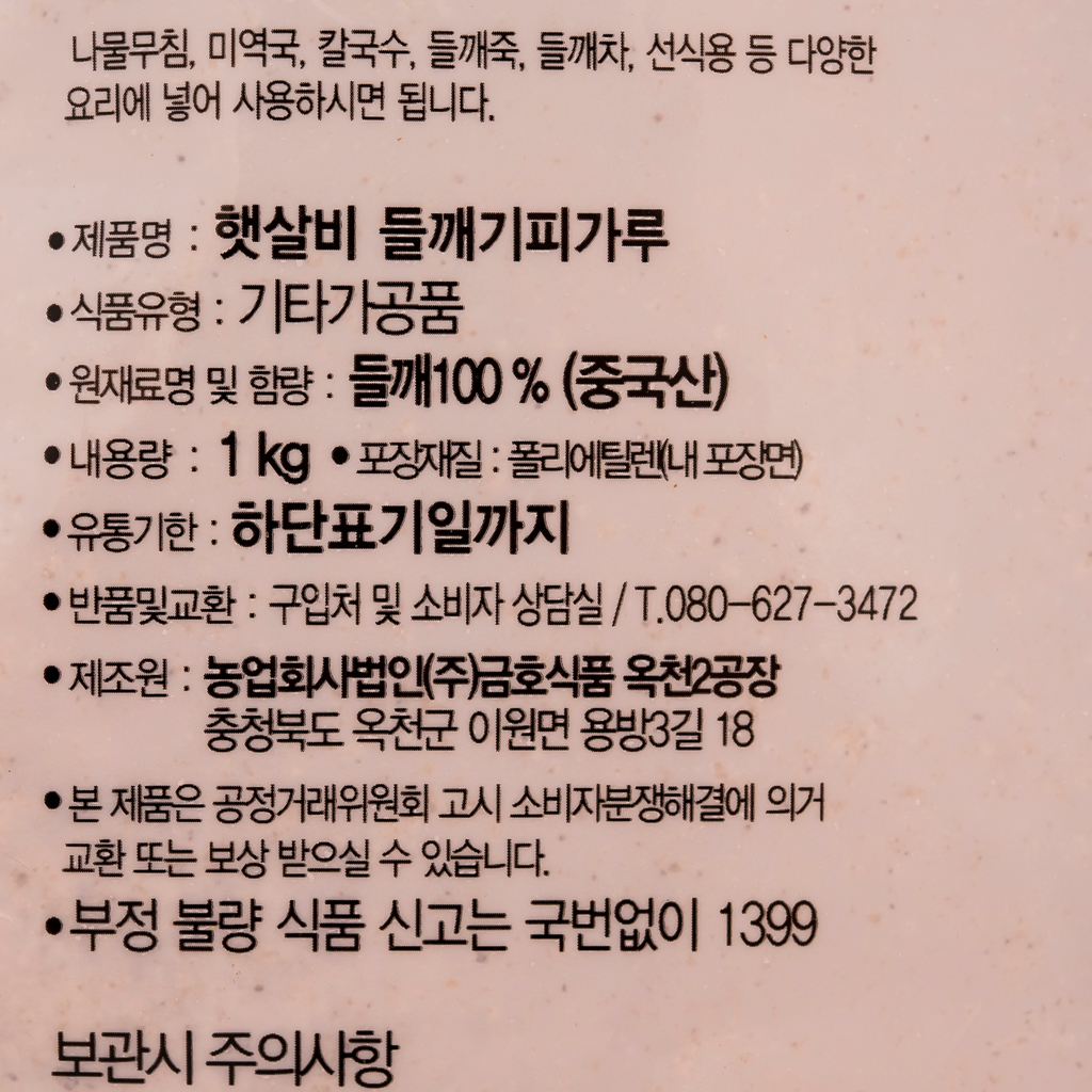 영양성분(식품위생법에 따른 영양성분 표시대상 식품에 한함) 상세설명참조 유전자재조합식품에 해당하는 경우의 표시 해당없음