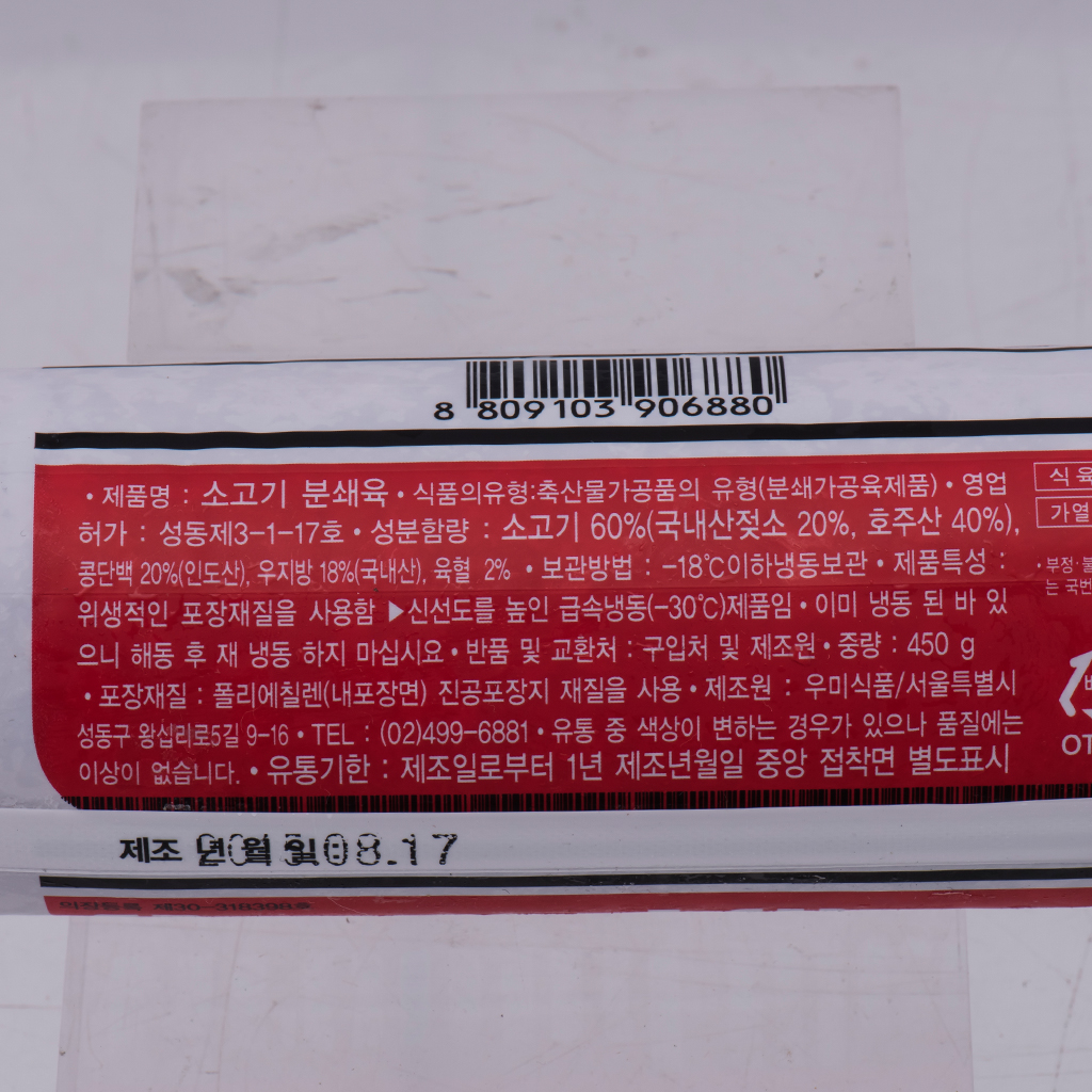 | 상품명 | 소고기분쇄육 | 식품유형 | 상세설명참조 |