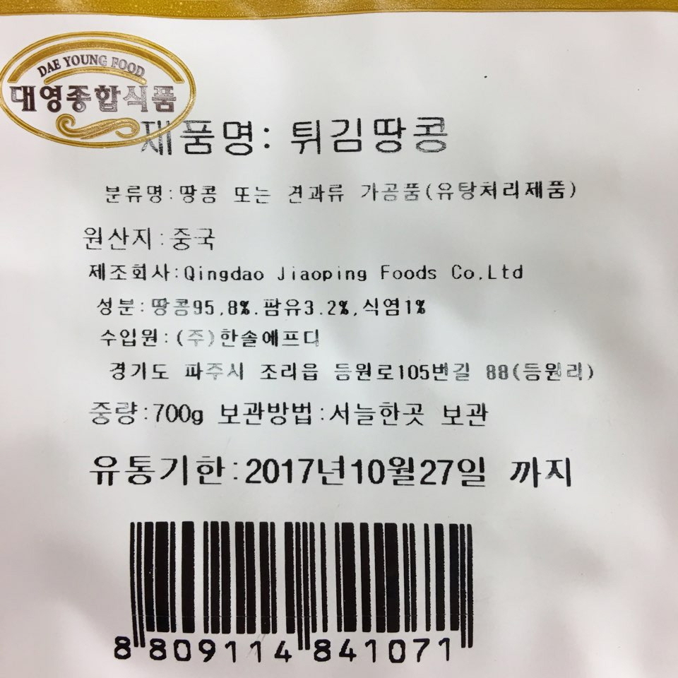PDY/한솔/튀김땅콩/비너700g