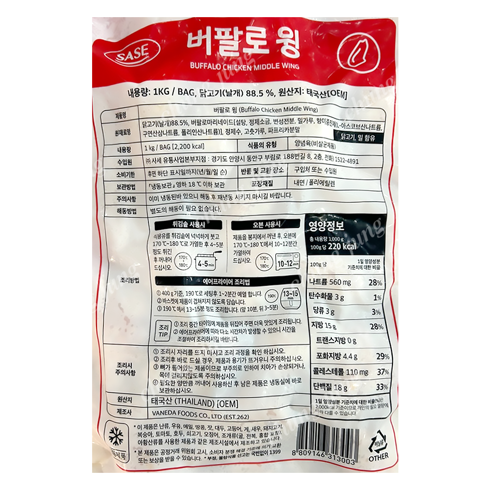 | 상품명 | 버팔로윙 | 식품유형 | 상세설명참조 |
