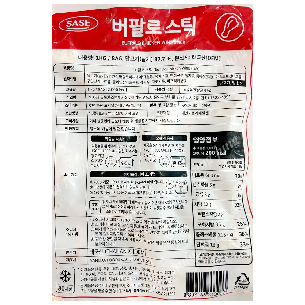 | 농수축산물품질관리법상 유전자변형농산물 표시,지리적 표시 | 태국산 | 포장단위별 용량(중량),수량 | 상세설명참조 |