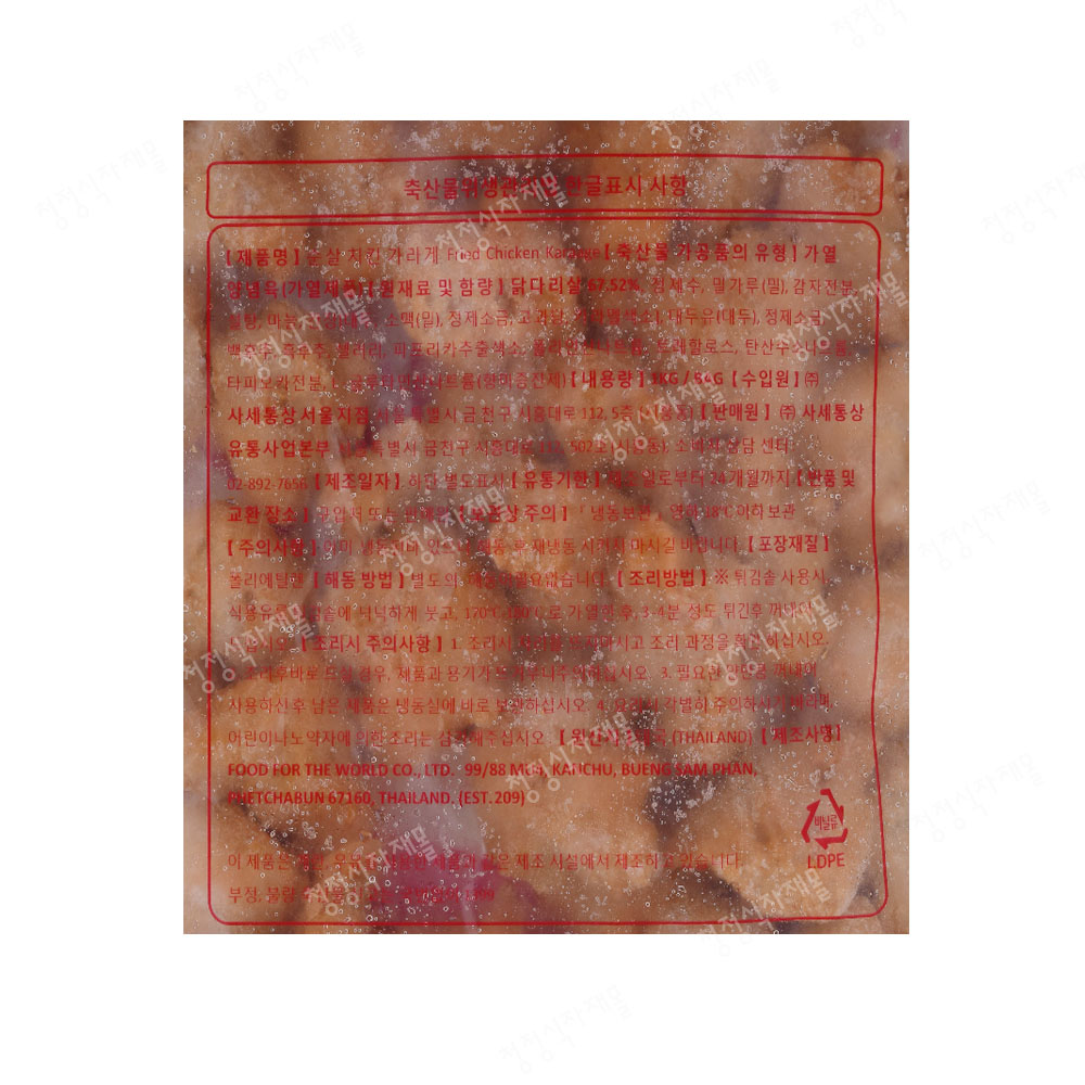 | 상품명 | 순살치킨가라게 | 식품유형 | 상세설명참조 |