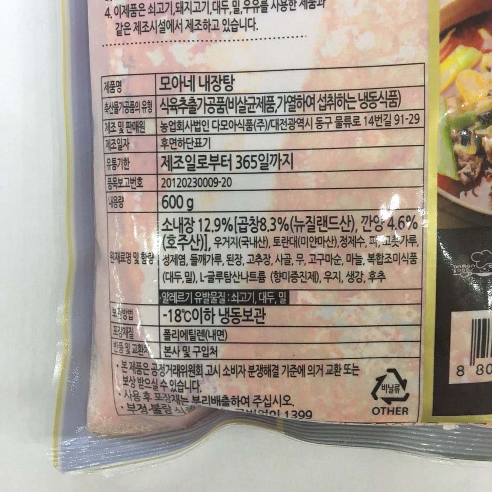 | 상품명 | 모아네 내장탕 | 식품유형 | 상세설명참조 |
