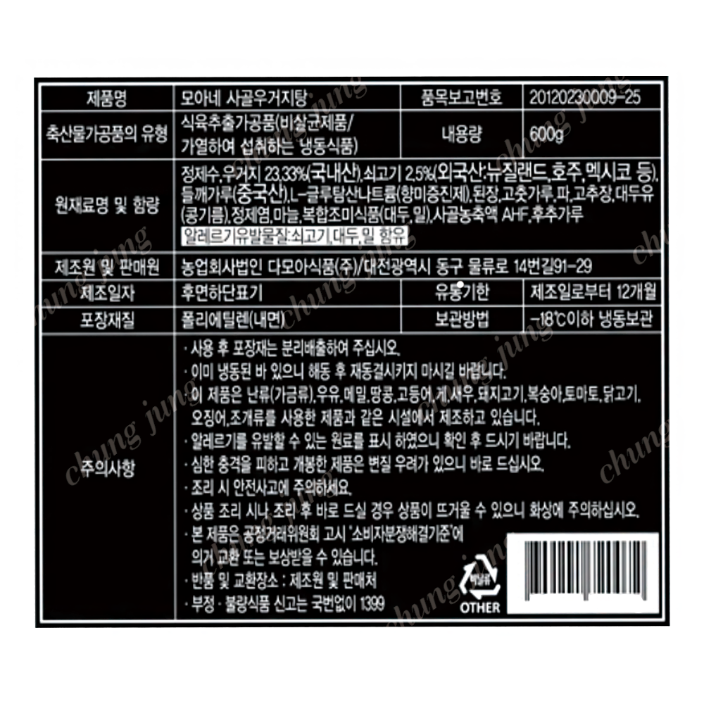 | 상품명 | 사골우거지탕 | 식품유형 | 상세설명참조 |