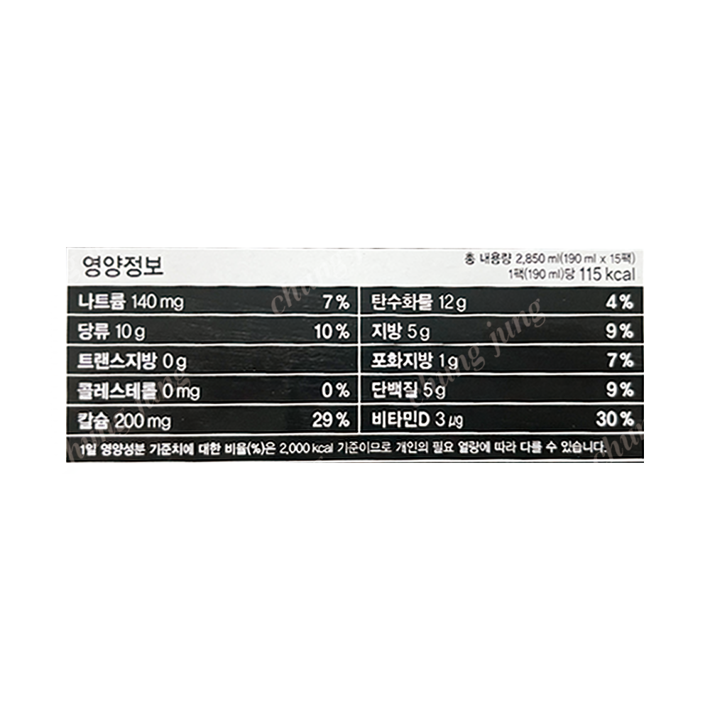 | 상품명 | 두유(검은콩칼슘,베지밀,190ml*15입) | 식품유형 | 상세설명참조 |