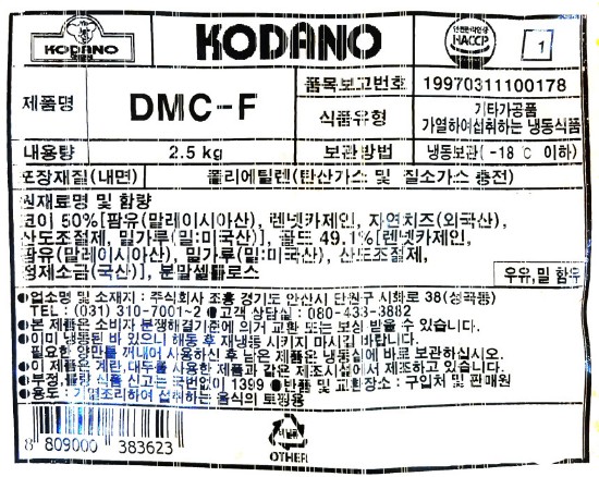 | 상품명 | 치즈(DMC-F(50%:50%),코다노,2.5kg) | 식품유형 | 상세설명참조 |